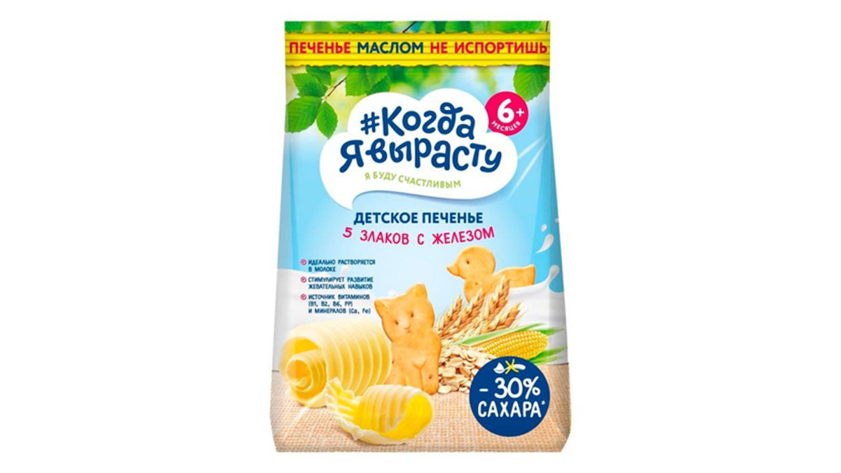 ორცხობილა - "როცა გავიზრდები" კარაქით, 5 მარცვლით, რკინით /6თვ+/ 120გრ 2186