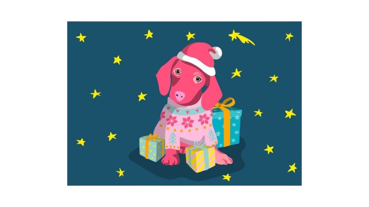 საახალწლო მისალოცი ბარათი შველის გამოსახულებით