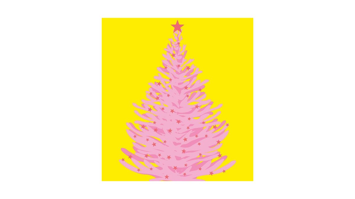 საახალწლო მისალოცი ბარათი ვარდისფერი ნაძვის ხე