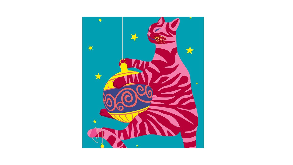 საახალწლო მისალოცი ბარათი ვარდისფერი კატა