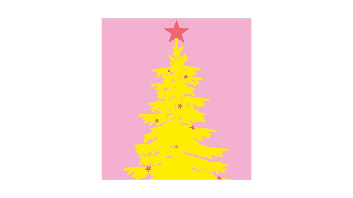 საახალწლო მისალოცი ბარათი ყვითელი ნაძვის ხე