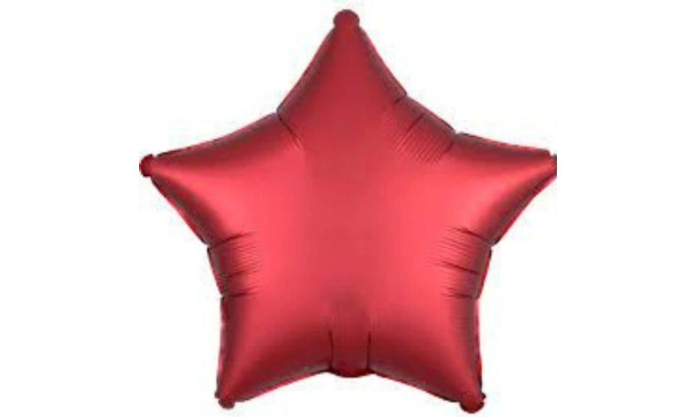 ჰელიუმის ბუშტი აბრეშუმის ბზინვარებით მუქი წითელი ვარსკვლავი 43 სმ
