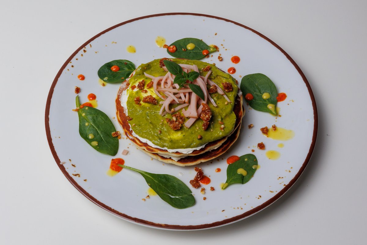 Με γαλοπούλα, philadelphia, σπανάκι, guacamole, σάλτσα λεμονιού και καραμελωμένο φουντούκι