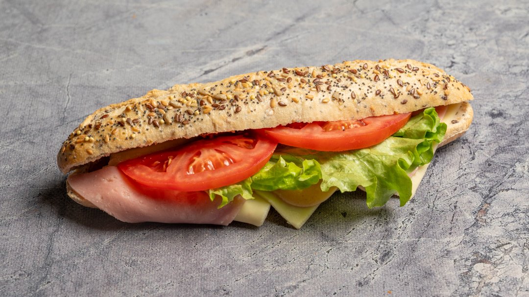 Με ζαμπόν ή γαλοπούλα, τυρί κίτρινο, μαρούλι, ντομάτα και μαγιονέζα