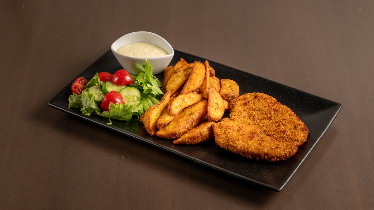 Συνοδεύονται από πατάτες τηγανητές (country style), σαλάτα και σως μουστάρδας
