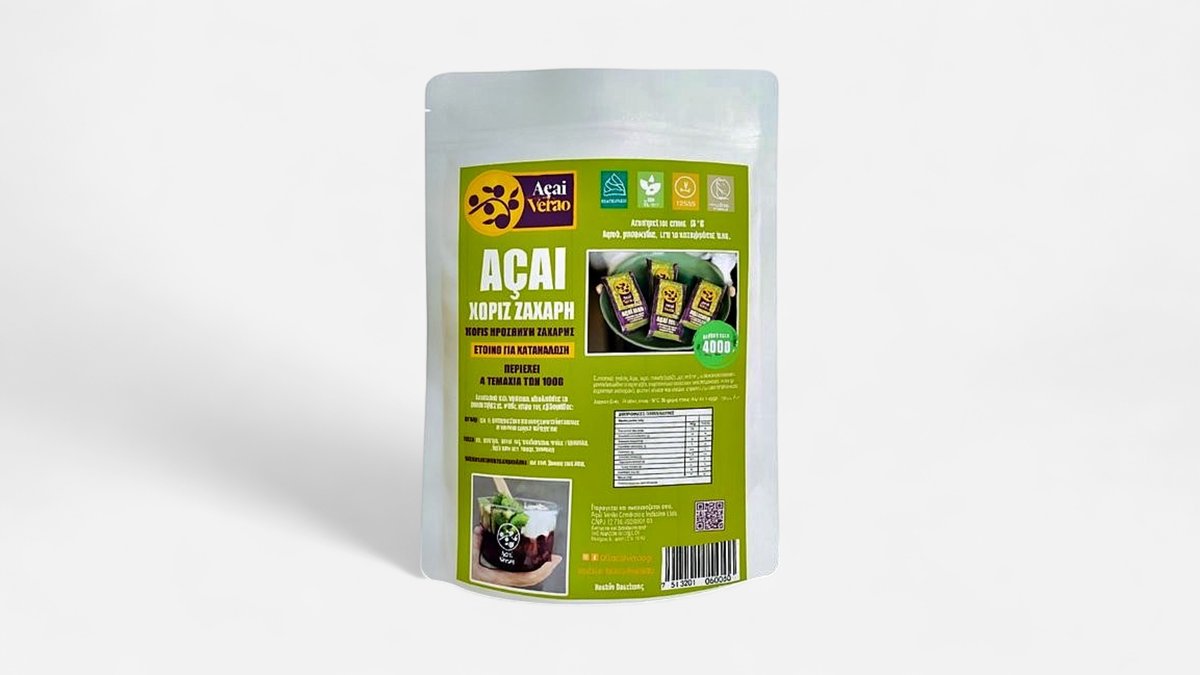 Η συσκευασία είναι 8oz Φτιάξε το δικό σου açaí bowl με τα υλικά της επιλογής σου Λάβετε υπόψη οτι τα προϊόντα μας μπορεί να περιέχουν ή να έχουν έρθει σε επαφή με κοινά αλλεργιογόνα, όπως γαλακτοκομικά, αυγά, σιτάρι, σόγια, ξηρούς καρπούς κ.α
