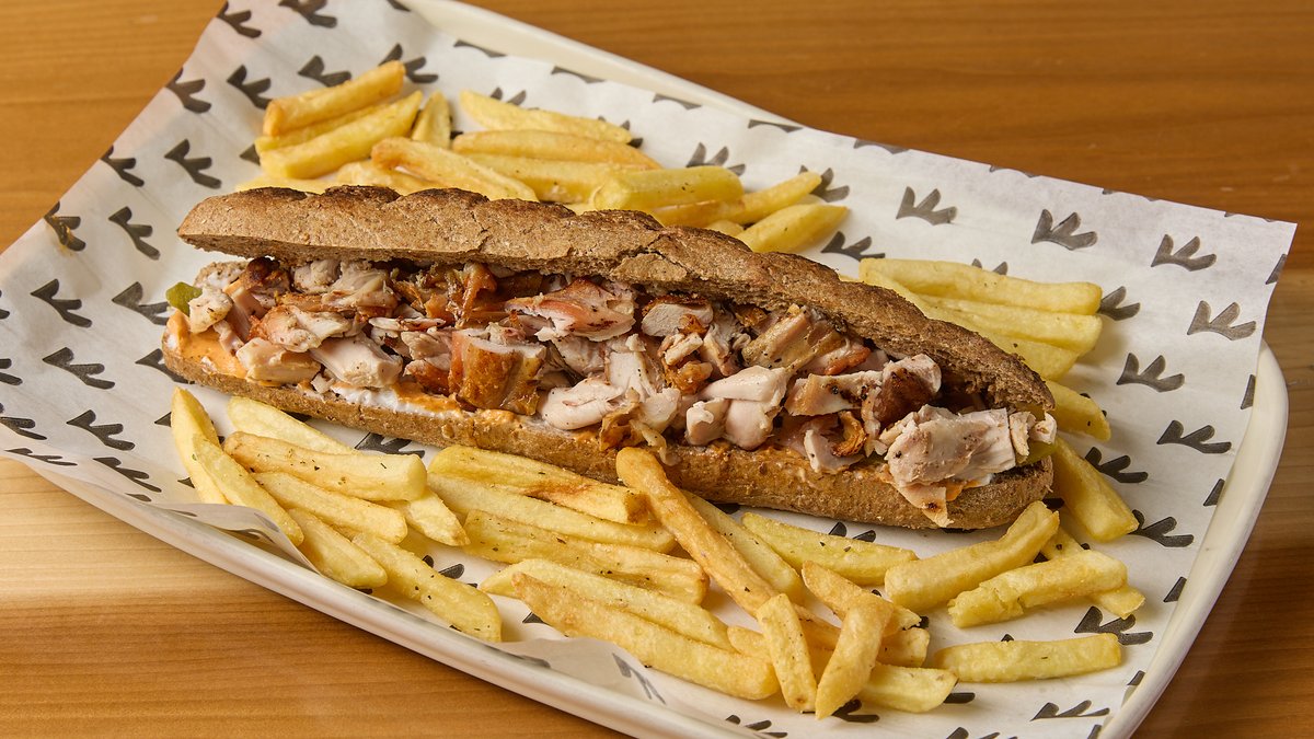 Μπακέτα ολικής, κοτόπουλο, πατάτες τηγανητές , coleslaw, πίκλες, σως σκόρδου, πικάντικη σως (λίγο καυτερή)