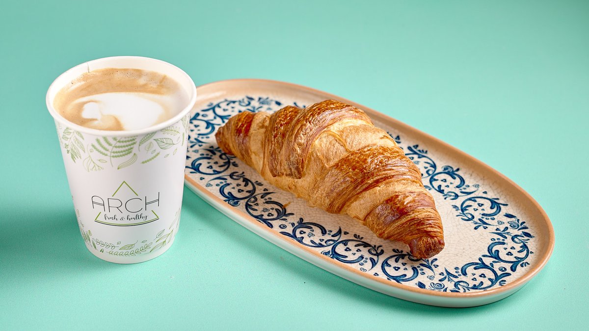 1 Cappuccino + 1 Κρουασάν Βουτύρου