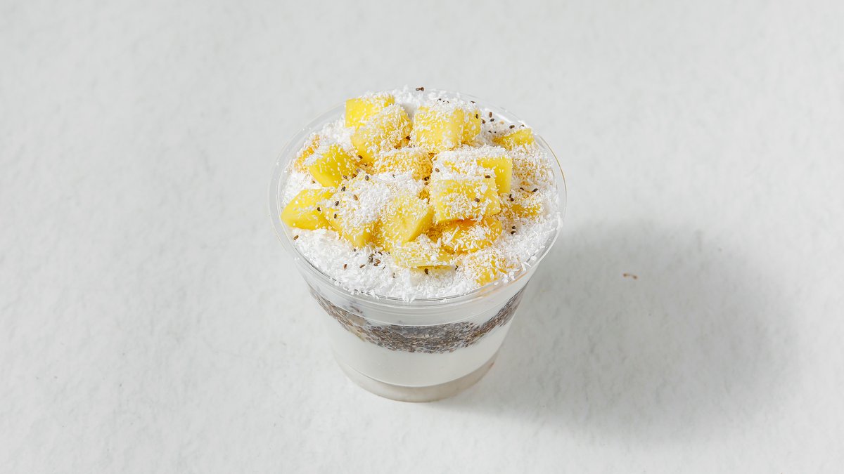 Γιαούρτι, ανανάς, μάνγκο, τριμμένη καρύδα ,chia και μέλι