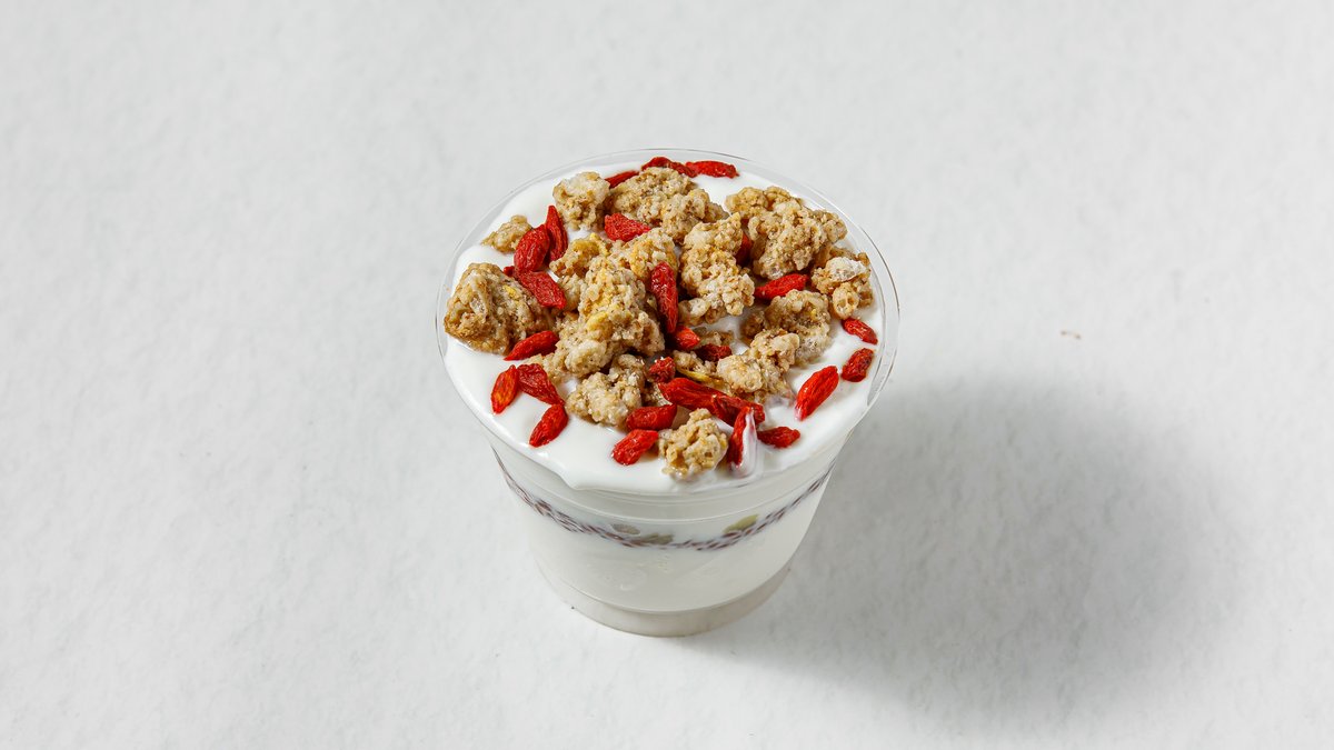 Γιαούρτι, granola, goji berries, ανανάς, λιναρόσπορος και μέλι