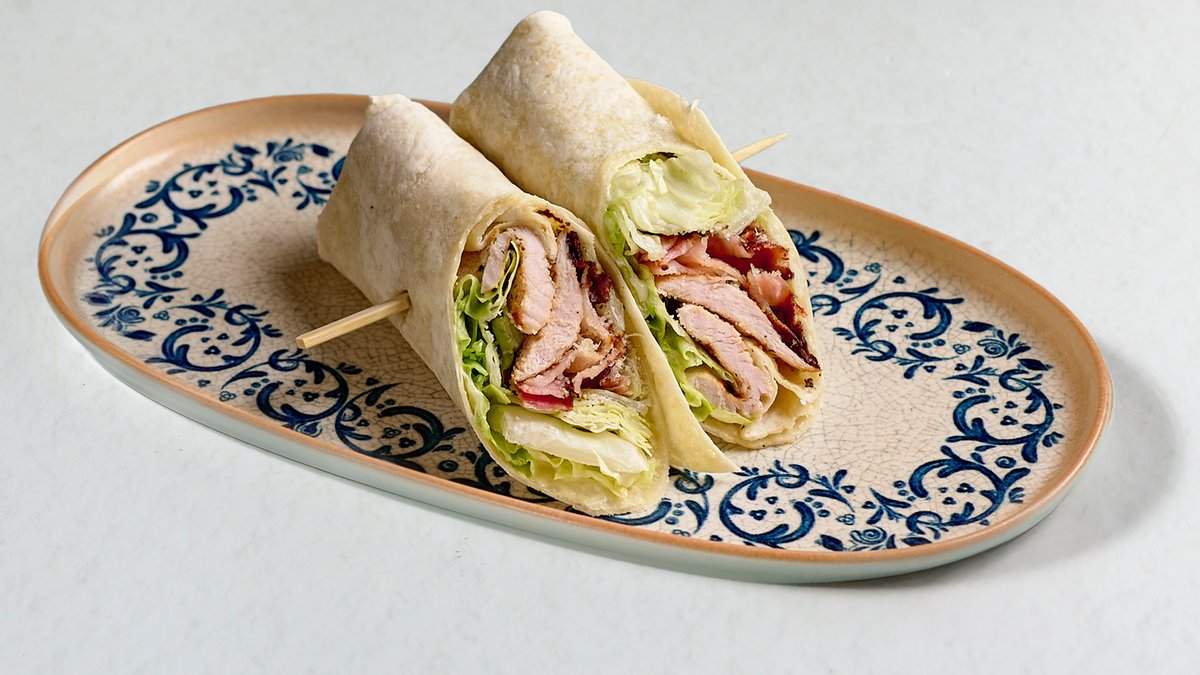 Κοτόπουλο, μπέικον, παρμεζάνα, iceberg, caesar sauce σε τορτίγια