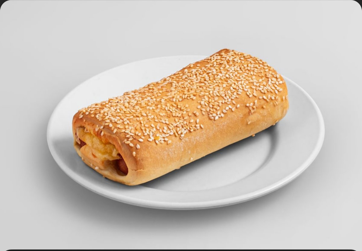 Αφράτο πιροσκί γεμισμένο με ζουμερό λουκάνικο