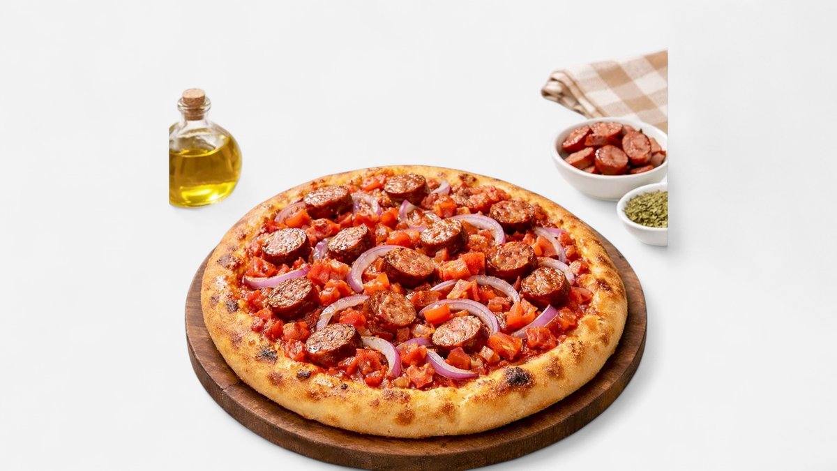 Λαδένια κιμώλου ντομάτα κρεμμύδι τυρί και λουκάνικο
