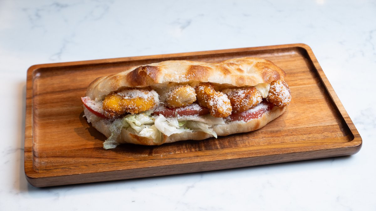 Brioche, εμενταλ, μπέικον, κοτόπουλο πανε, ceasar's sauce