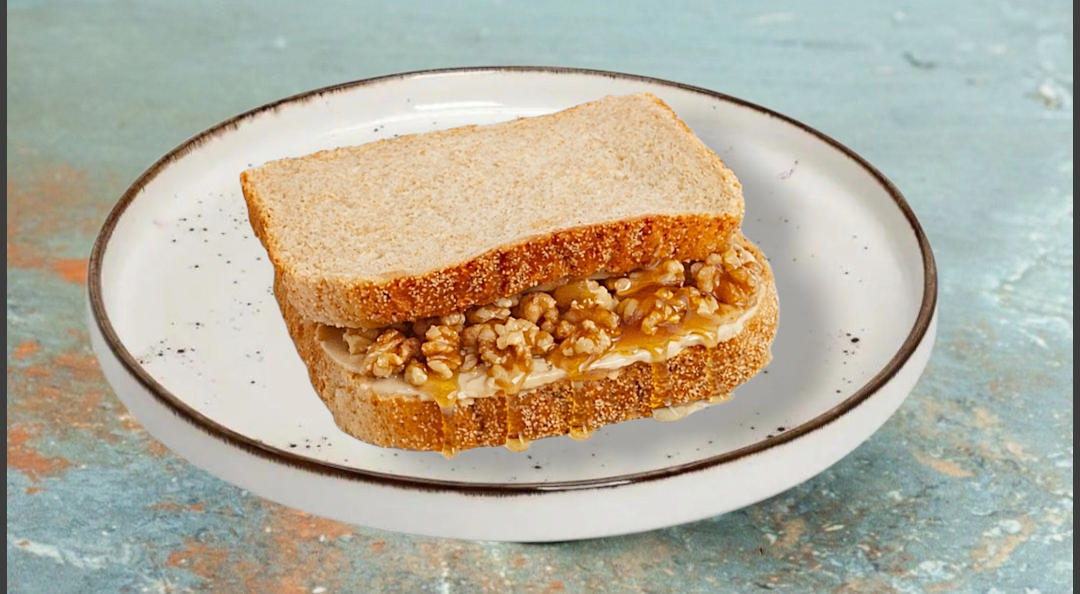 Ταχίνι ,Καρύδια και Μέλι σε ΧL αφράτο ψωμάκι του τοστ.