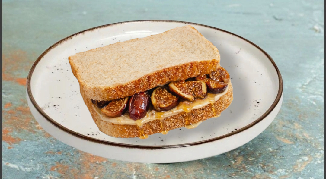 Χουρμάδες σύκα ταχίνι και μέλι σε XL ψωμάκι αφράτο του τοστ.