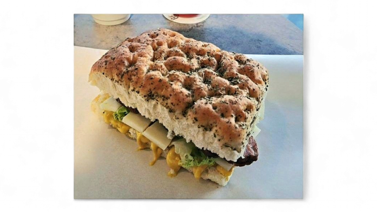 Focacia με Γραβιέρα Κρητης,Απακι Κρητης ,Λολα, ντοματα,μουσταρδα