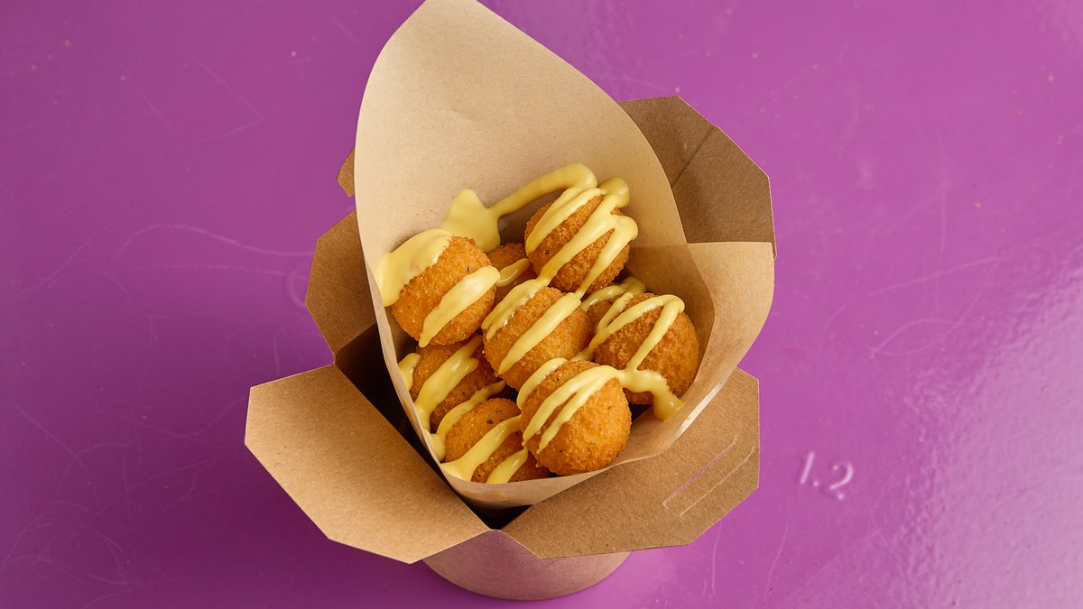 7 Τεμάχια. Τυρόμπαλες τηγανητές με σως μουστάρδας μέλι