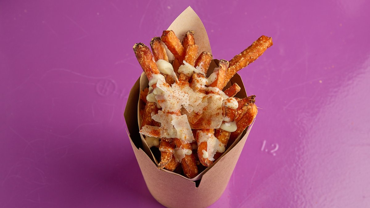 Γλυκοπατάτες με μαγιονέζα και flakes παρμεζάνας