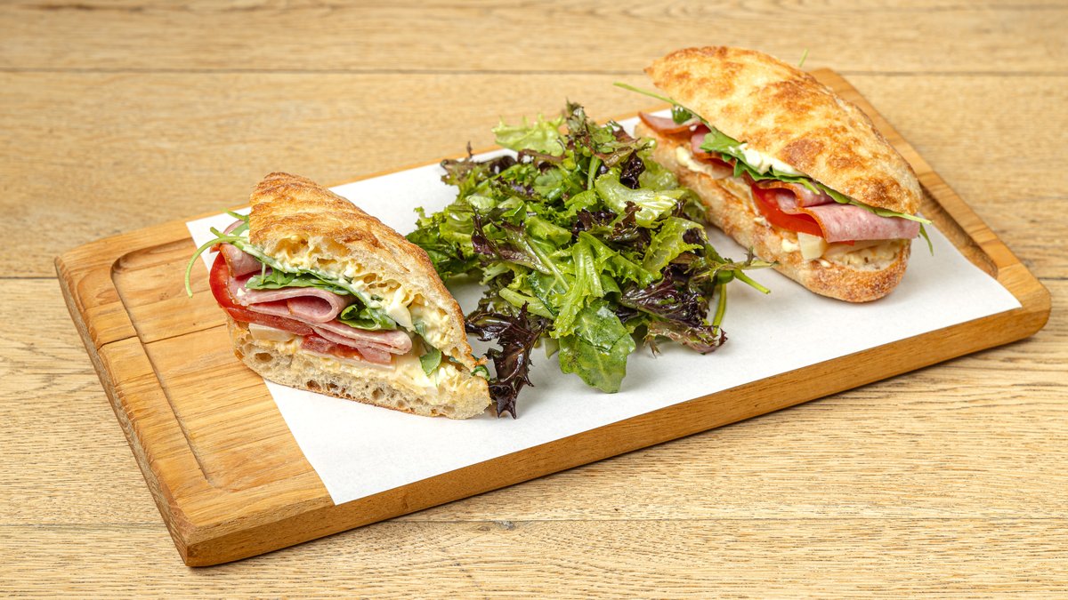 Ψωμί brioche με μαρούλι, ντομάτα, φιλέτο κοτόπουλο, μπέικον, ζαμπόν fouandre, τυρί και spoon σως.Περιλαμβάνεται τέλος οικολογικής συσκευασίας