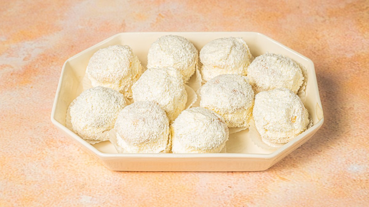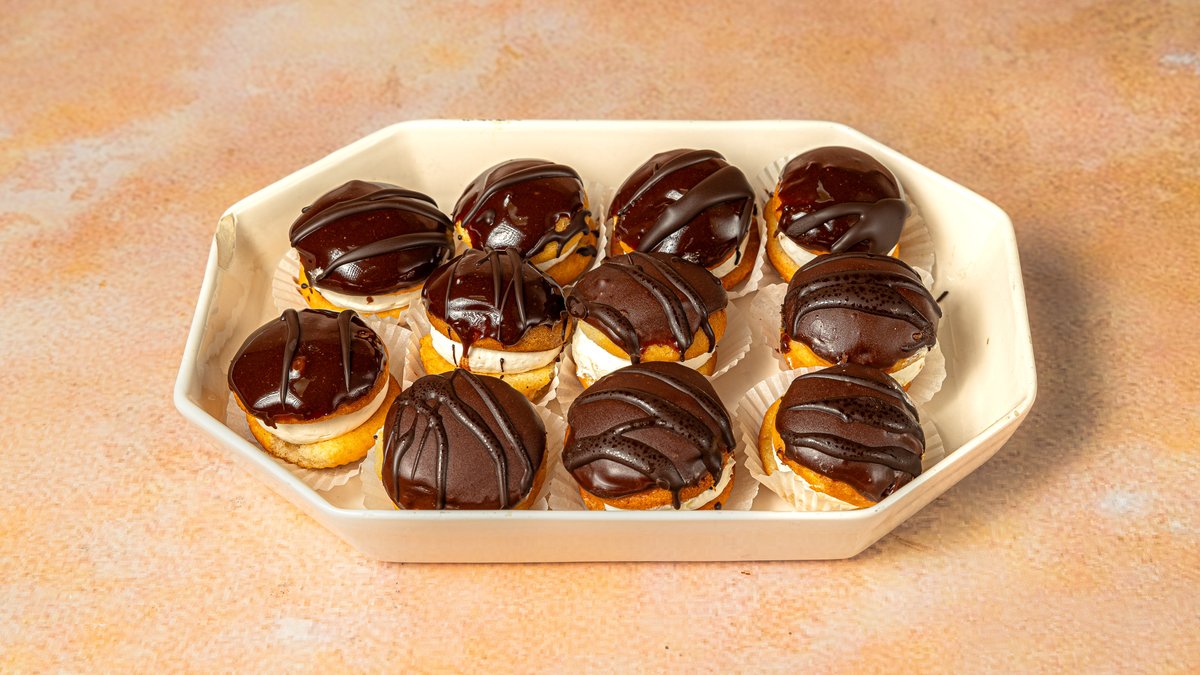 Ποικιλία από εκλέρ, κόκκινα τρουφάκια και χιονούλες.