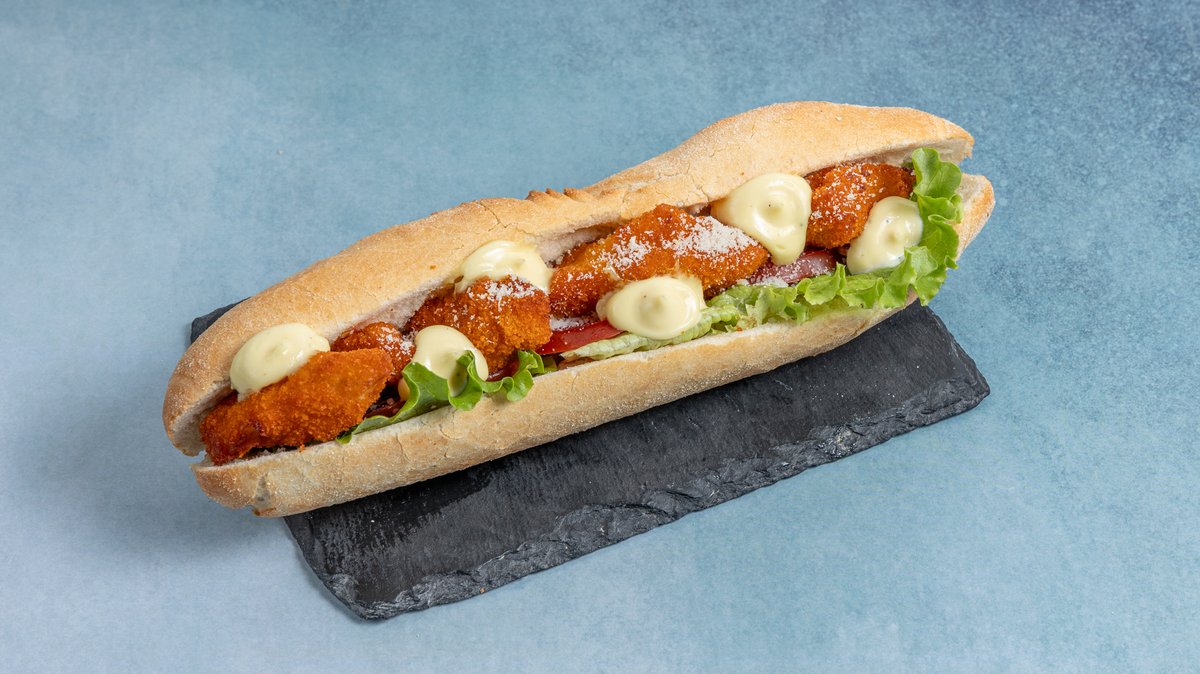 Με edam, κοτόπουλο, bacon, iceberg , ντομάτα και μαγιονέζα. Συνοδεύεται απο πατάτες