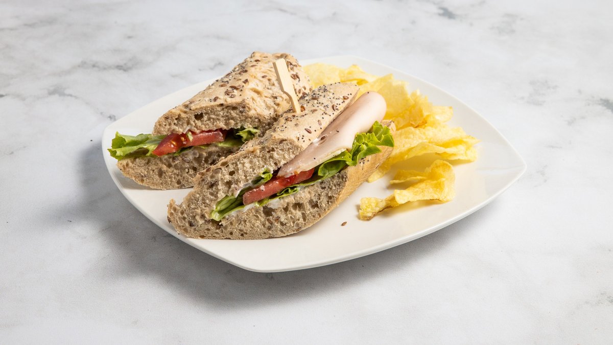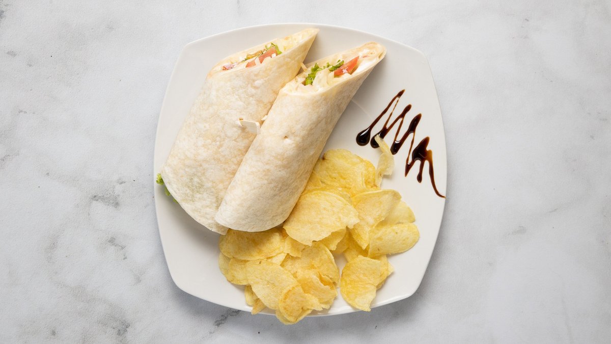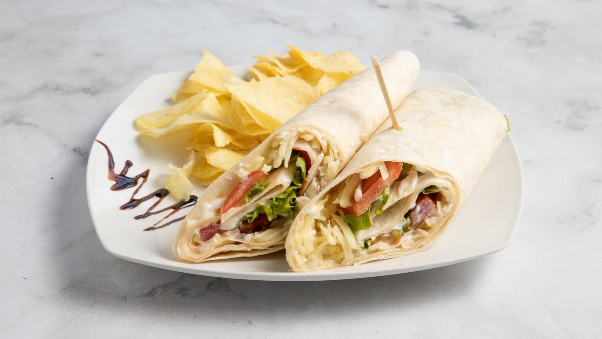 Με τυρί, κοτόπουλο, ζαμπόν, μπέικον, ντομάτα, μαρούλι και μαγιονέζα. Συνοδεύεται από φρέσκες πατάτες τηγανητές ή chips