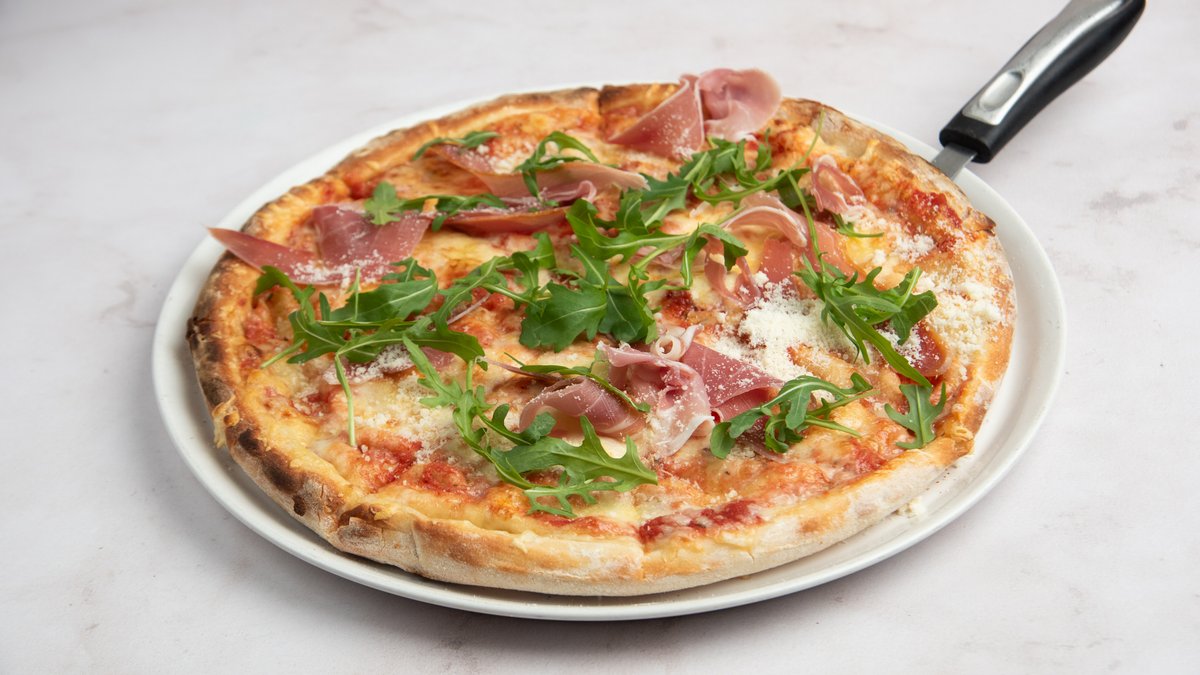 Με προσούτο, παρμεζάνα, ρόκα, ντομάτα και σως pesto