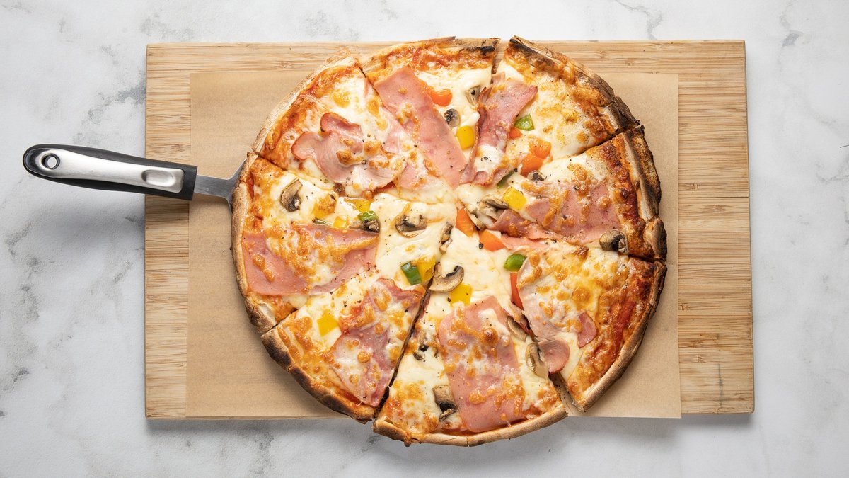 Με τυρί, ζαμπόν, μπέικον, πιπεριές και μανιτάρια. Συνοδεύεται από πατάτες τηγανητές ή φρέσκια σαλάτα