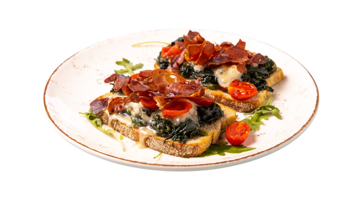 Με σπανάκι, κρέμα gorgonzola και τραγανό μπέικον