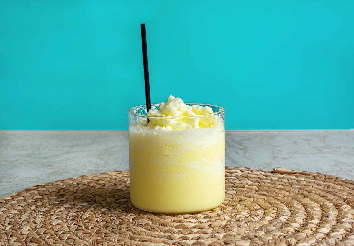 12oz. Πρωτεϊνικό ρόφημα με ανανά, γάλα καρύδας, μπανάνα, μέλι και 25 g πρωτεΐνης με γέυση καρύδα και λευκή σοκολάτα