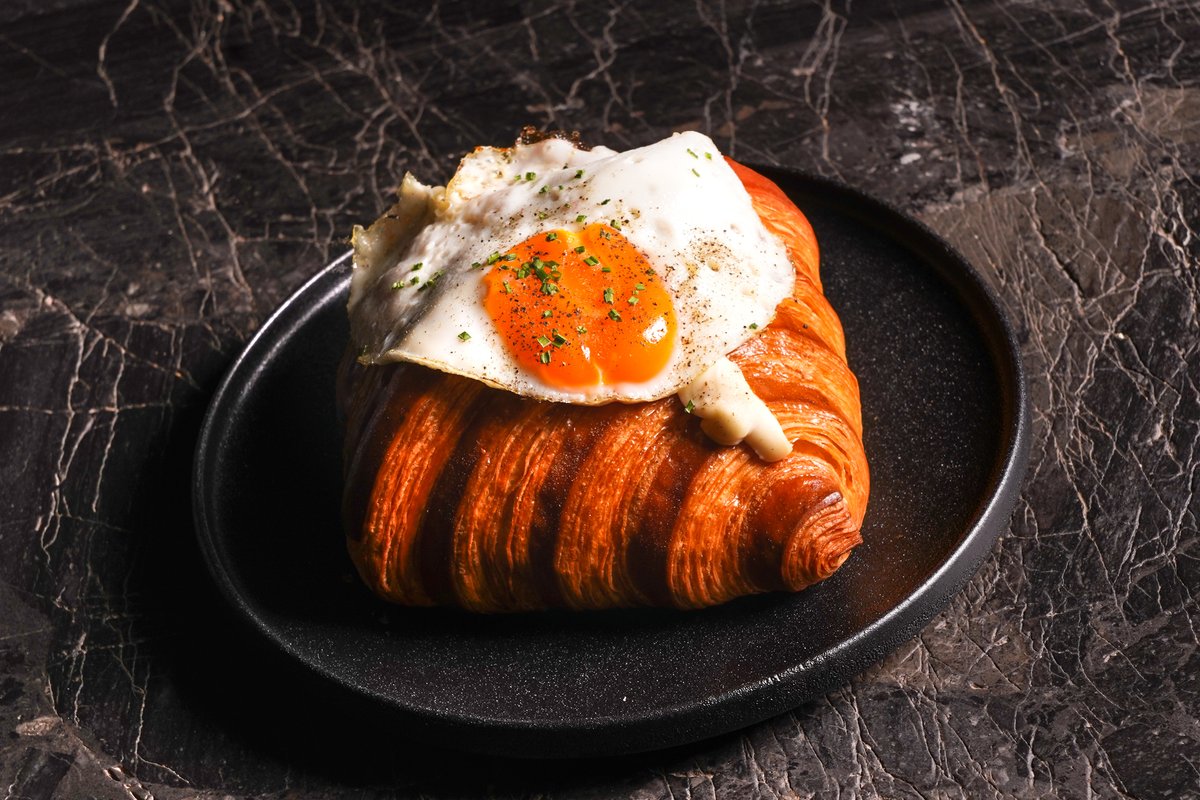 Σάντουιτς ψημένο αργά στο μαντέμι με πατατοσαλάτα, βούτυρο μουστάρδας, τραγανό μπέικον, βραστό αυγό, γραβιέρα Κρήτης. / Sandwich grilled on cast iron with potato salad, mustard butter, crispy bacon, boiled egg, Cretan graviera.
