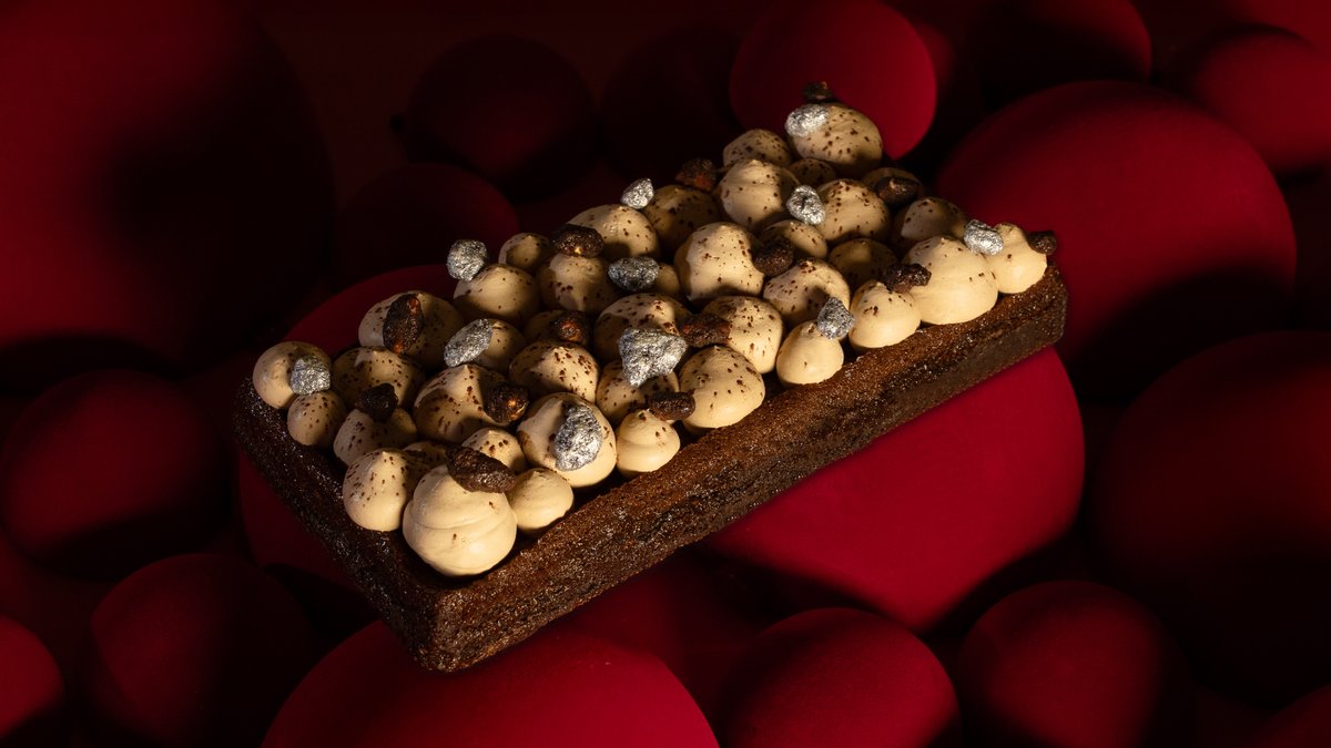 Ένα βαθύ brownie με muscovado, σοκολατένια κρέμα γάλακτος αρωματισμένη με καφέ Arabica και crumble καραμελωμένης σοκολάτας για λεπτή τραγανότητα.