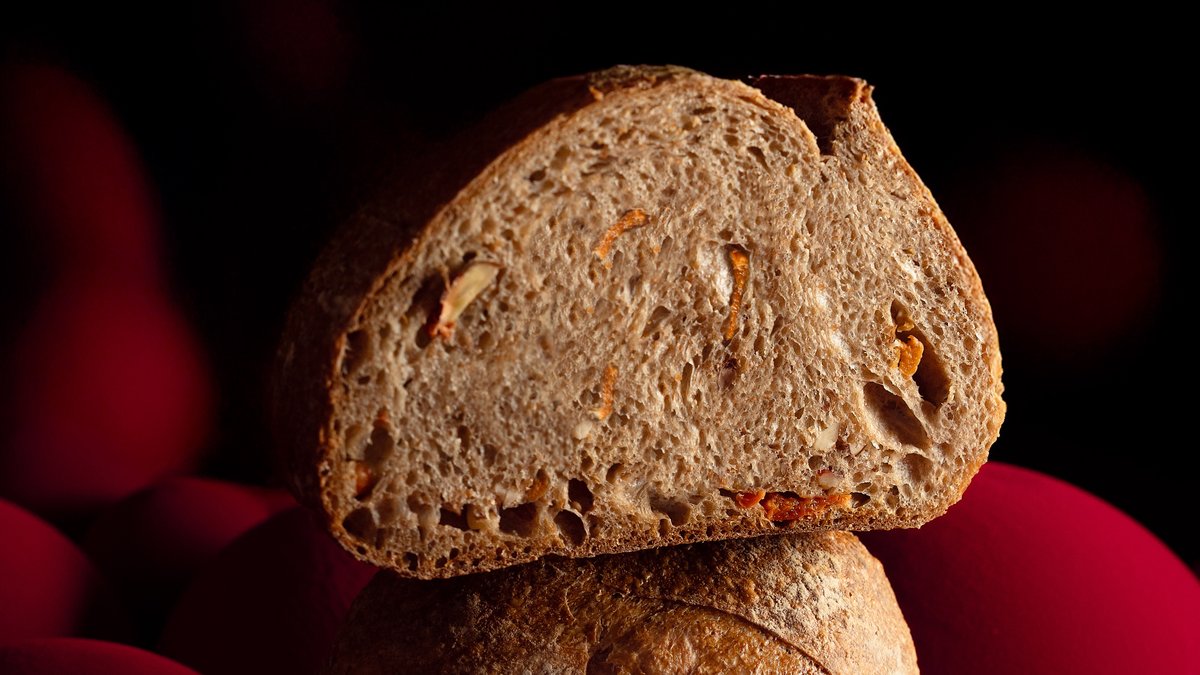Σταρένιο ψωμί ολικής άλεσης με γλυκάνισο, αμύγδαλα και αποξηραμένα βερύκοκα.