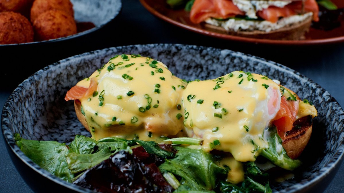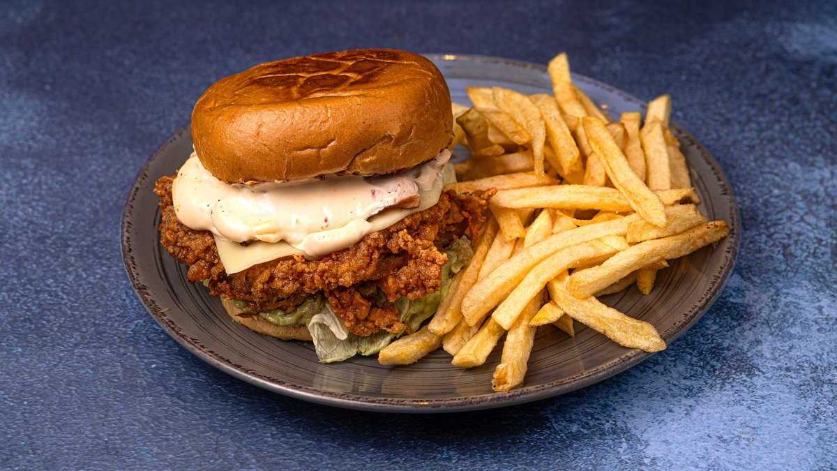 Δύο smashed μπιφτέκια (180γρ), cheddar, smoked bacon, iceberg, ντομάτα, πίκλες, bbq και αυγό μάτι