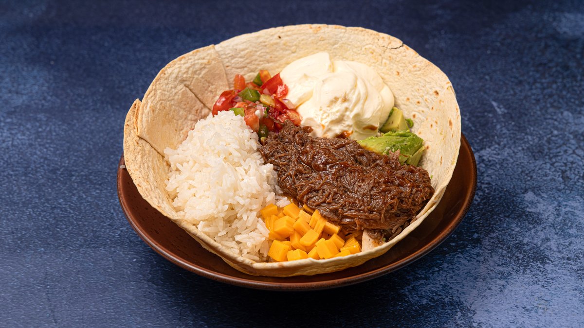 Με κοτόπουλο σχάρας, jasmine rice, pico de gallo, αβοκάντο, sour cream και cheddar