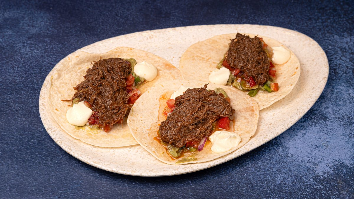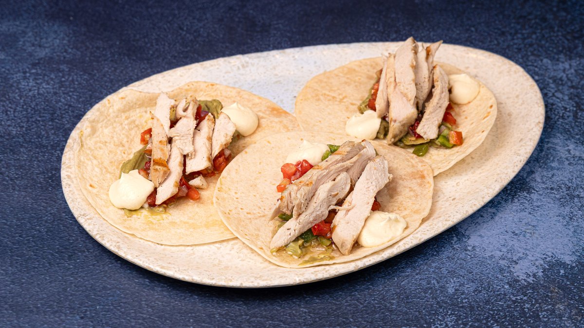 2 τεμάχια. Με guacamole, πολύχρωμες πιπεριές, pico de gallo και sweet chili