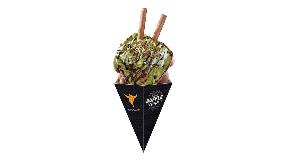 Double Chocolate βάφλα με κομμάτια σοκολάτας, Belgian Choco Noir παγωτό, κανταίφι με πραλίνα φιστίκι, πραλίνα φιστικιού, σοκόλατα υγείας, φιστίκι Αιγίνης, Caprice και σαντιγί