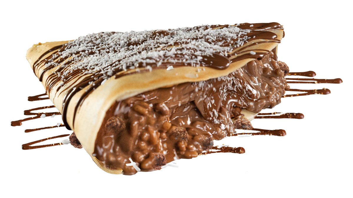 Με Nutella σοκολάτα, μπανάνα και μπισκότο βουτύρου. Συνοδεύεται προαιρετικά με παγωτό