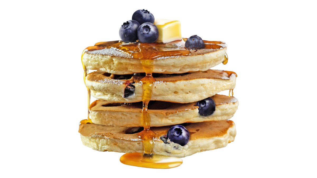 Τέσσερα Βανίλια Pancakes με μύρτιλα , βούτυρο αγελαδινό, μύρτιλα και σιρόπι σφενδάμου