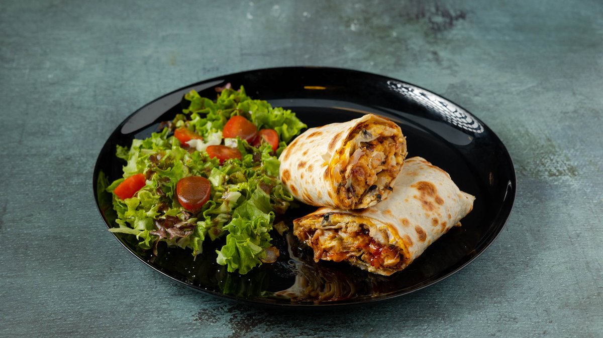 Με 3 αυγά, κοτόπουλο, μανιτάρια, πολύχρωμες πιπεριές, τριμμένο edam και sweet chili sauce σε τορτίγια. Συνοδεύεται από σαλάτα με λόλα κόκκινη και πράσινη, ντοματίνια και vinaigette βαλσάμικο
