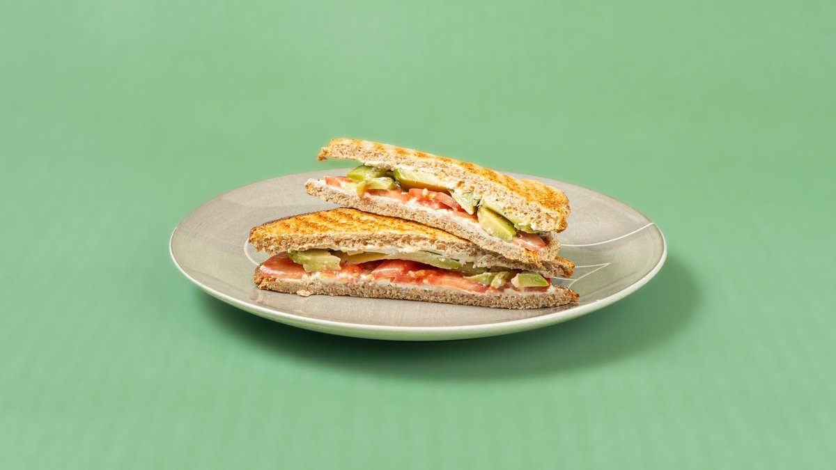 Με philadelphia, αυγό βραστό, ντομάτα, iceberg και κρέμα avocado & avocado. Συνοδεύεται από σαλάτα με λόλα κόκκινη, λόλα πράσινη, ντοματίνια και vinaigetre βαλσάμικο