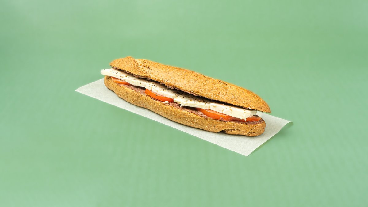 Μπαγκέτα ολικής άλεσης με πάστα ελιάς, φέτα, ντομάτα και ρίγανη