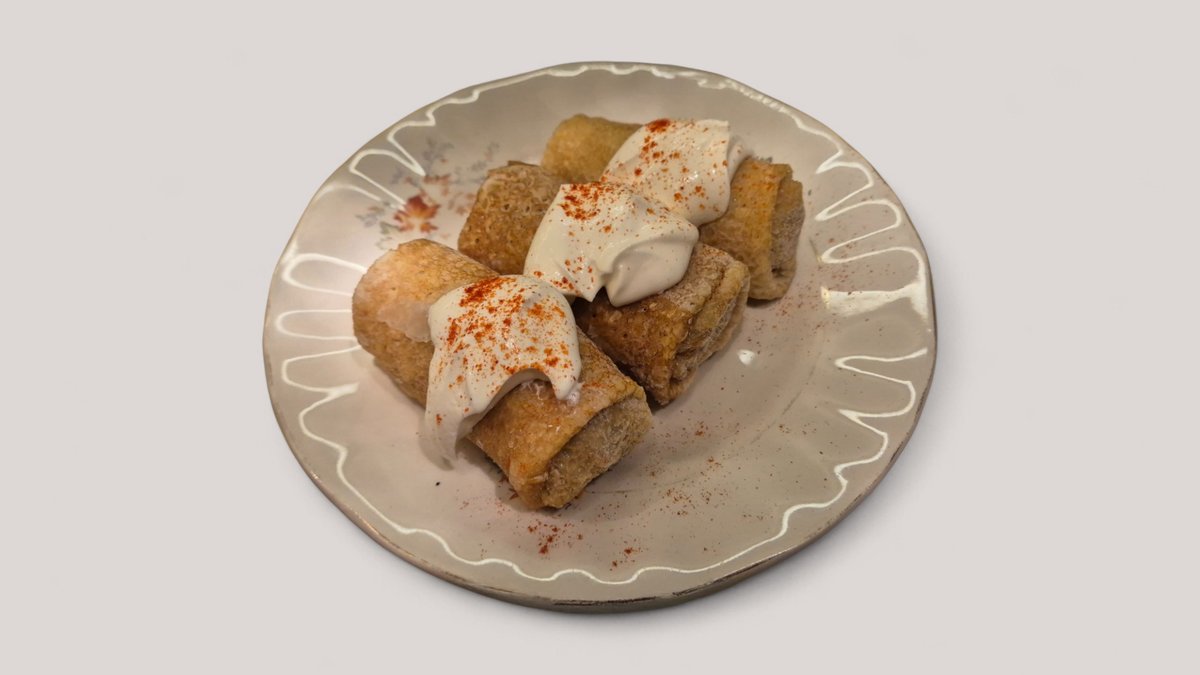 3 Τεμάχια. Με ανάμεικτο κιμά από μοσχάρι και χοιρινό. Συνοδεύεται από sour cream smetana