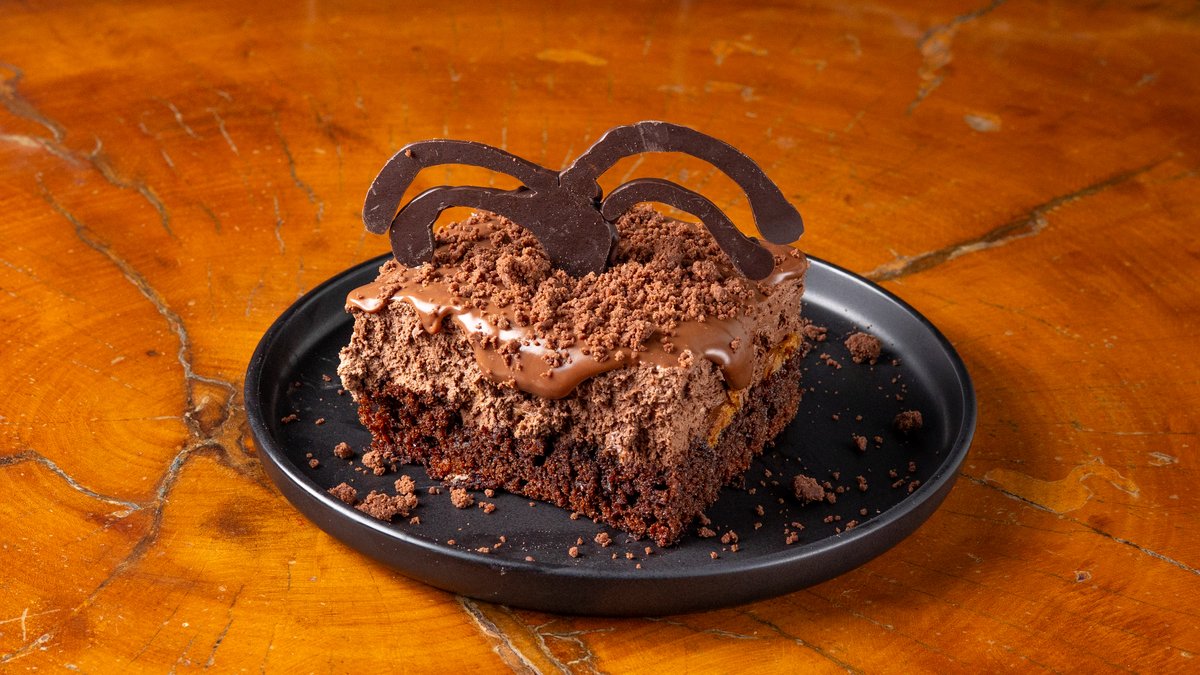 Σοκολατένιο κέικ ταψιού με γέμιση speculoos, κρέμα σοκολάτας & σάλτσα γάλακτος. Chocolate tray cake with speculoos filling, chocolate cream & milk sauce.