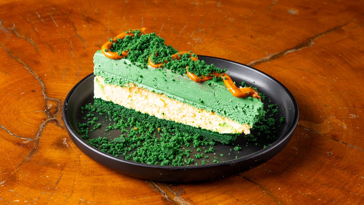 Πράσινο μπισκότο, κρέμα φυστικιού, βανίλια Μαδαγασκάρης & αλμυρή καραμέλα. Green cookie base, peanut cream, Madagascar vanilla & salted caramel.