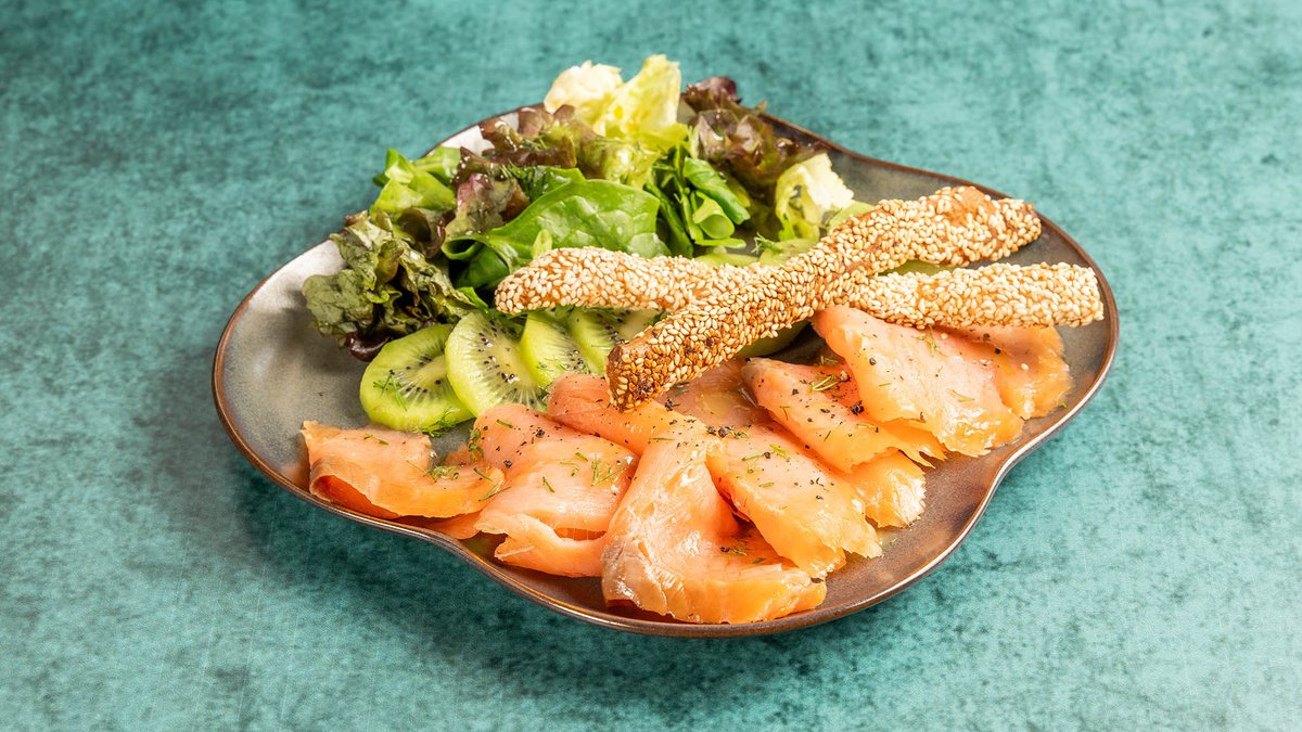 Καπνιστός σολομός, λόλα, μαγιονέζα, άνηθος, αβοκάντο και lemon honey