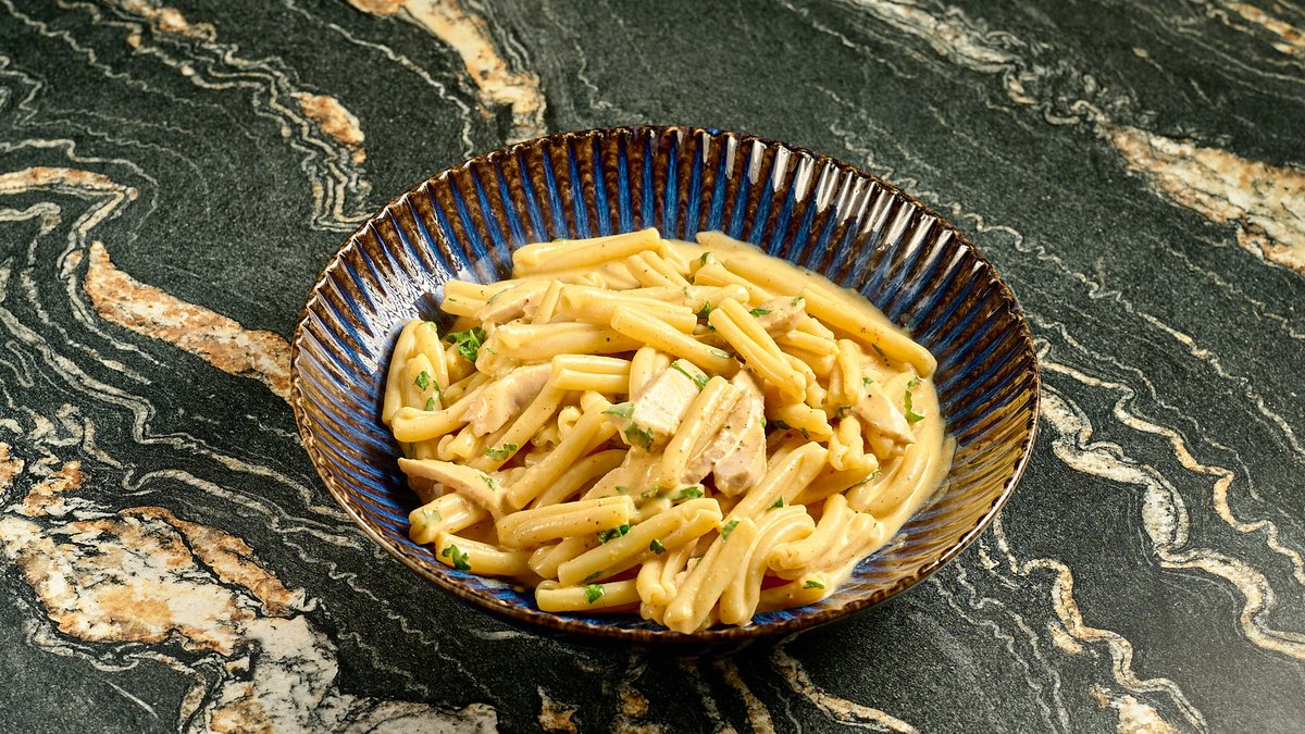 Ζυμαρικά casarecce με χοιρινά φιλετίνια και λεμονάτη σάλτσα με σκόρδο, μαϊντανό και παρμεζάνα