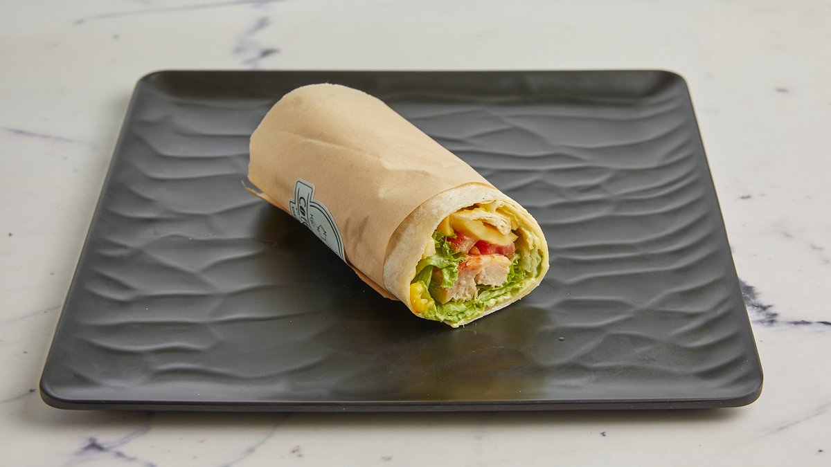 Με φιλέτο κοτόπουλο, παρμεζάνα, καλαμπόκι, ντομάτα, μαρούλι και sauce avocado ή sauce caesar`s