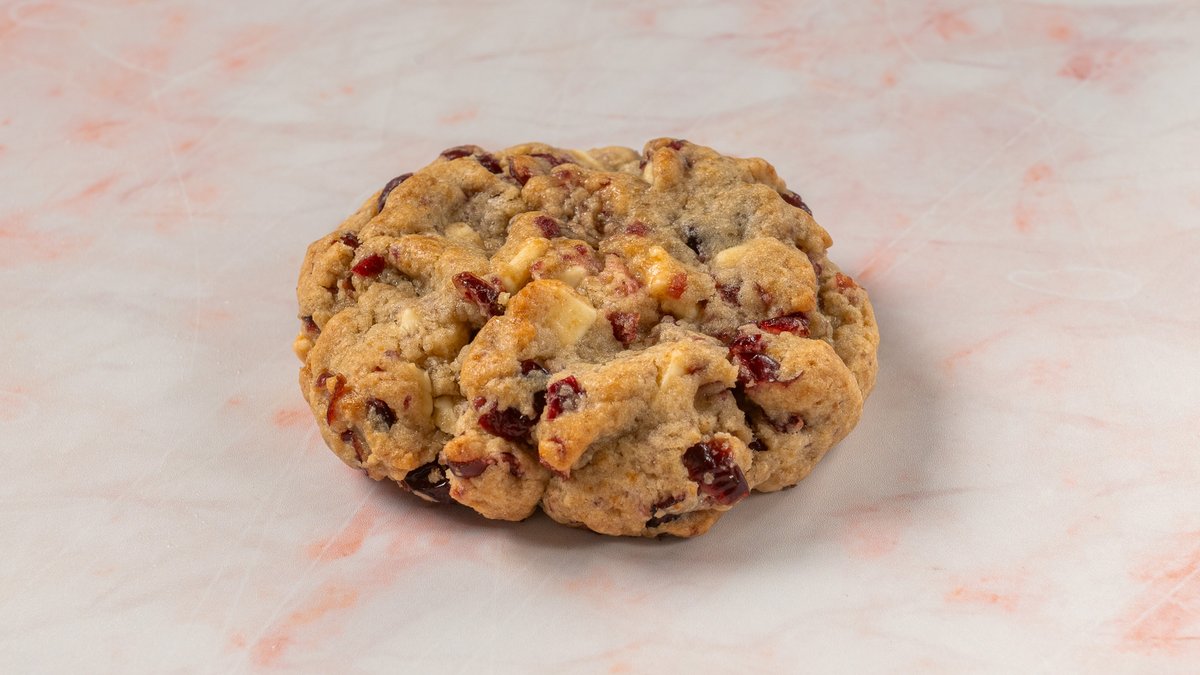 Cookie με cranberry, λευκή σοκολάτα, πορτοκάλι και ζάχαρη άχνη